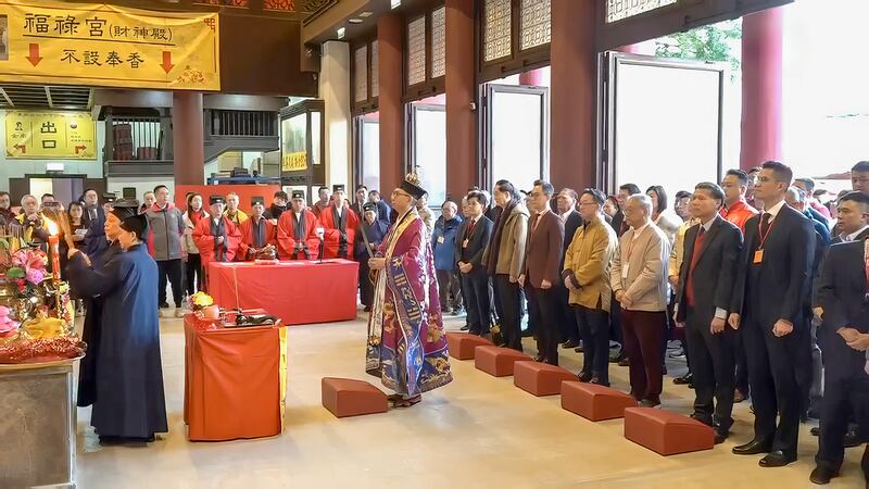 每年農曆初二車公廟都依習俗為香港來年運程求籤。(香港電台直播截圖)
