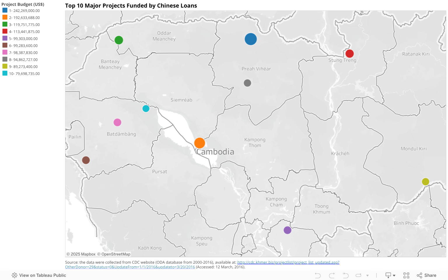 Maps of projects in Cambodia funded by Chinese loans and grants