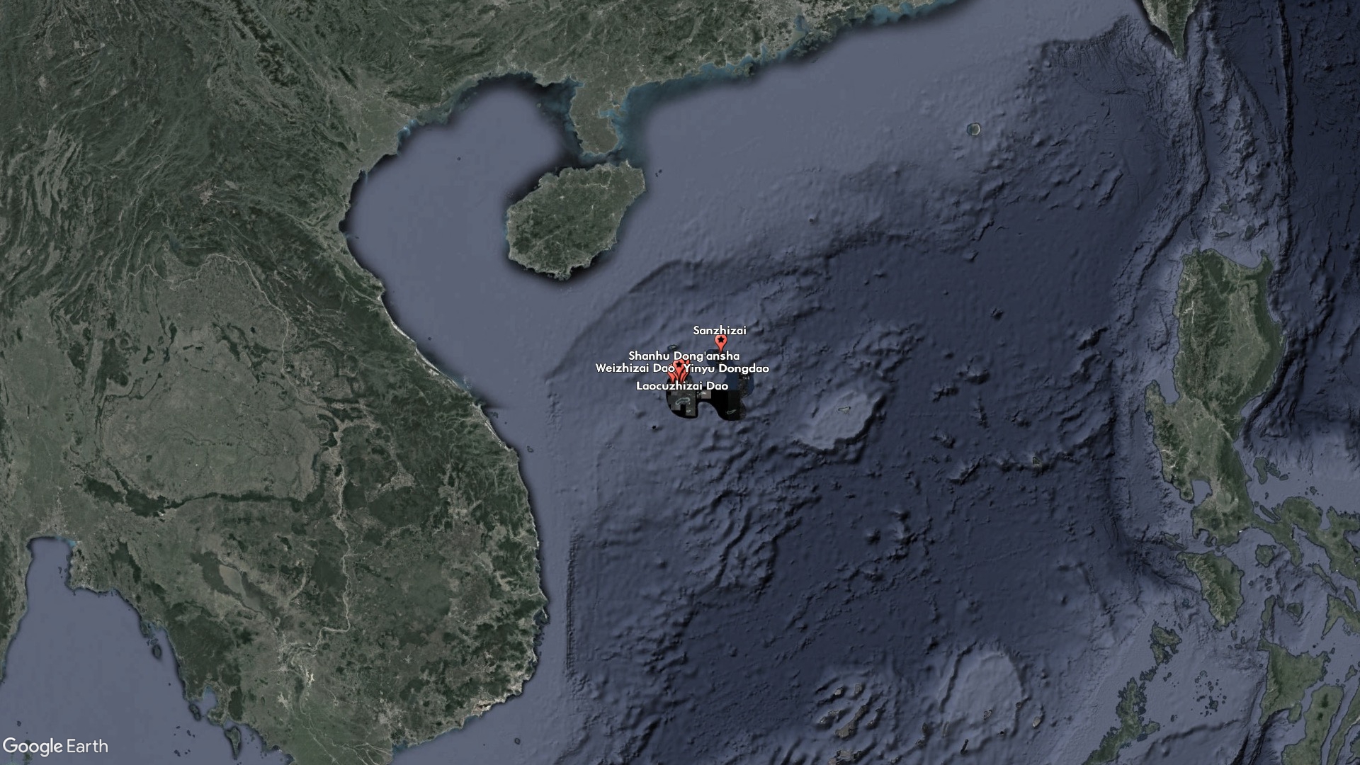 One of the new features, Sanzhizai, is a sandbar that satellite imagery shows to be uninhabited and barely above water at all hours. It is wedged between Middle Island and South Island, which are also unoccupied and claimed by China. China occupies all the inhabited features nearby, including North Island, which houses a small military outpost, and Tree Island, home to a larger port and military base.